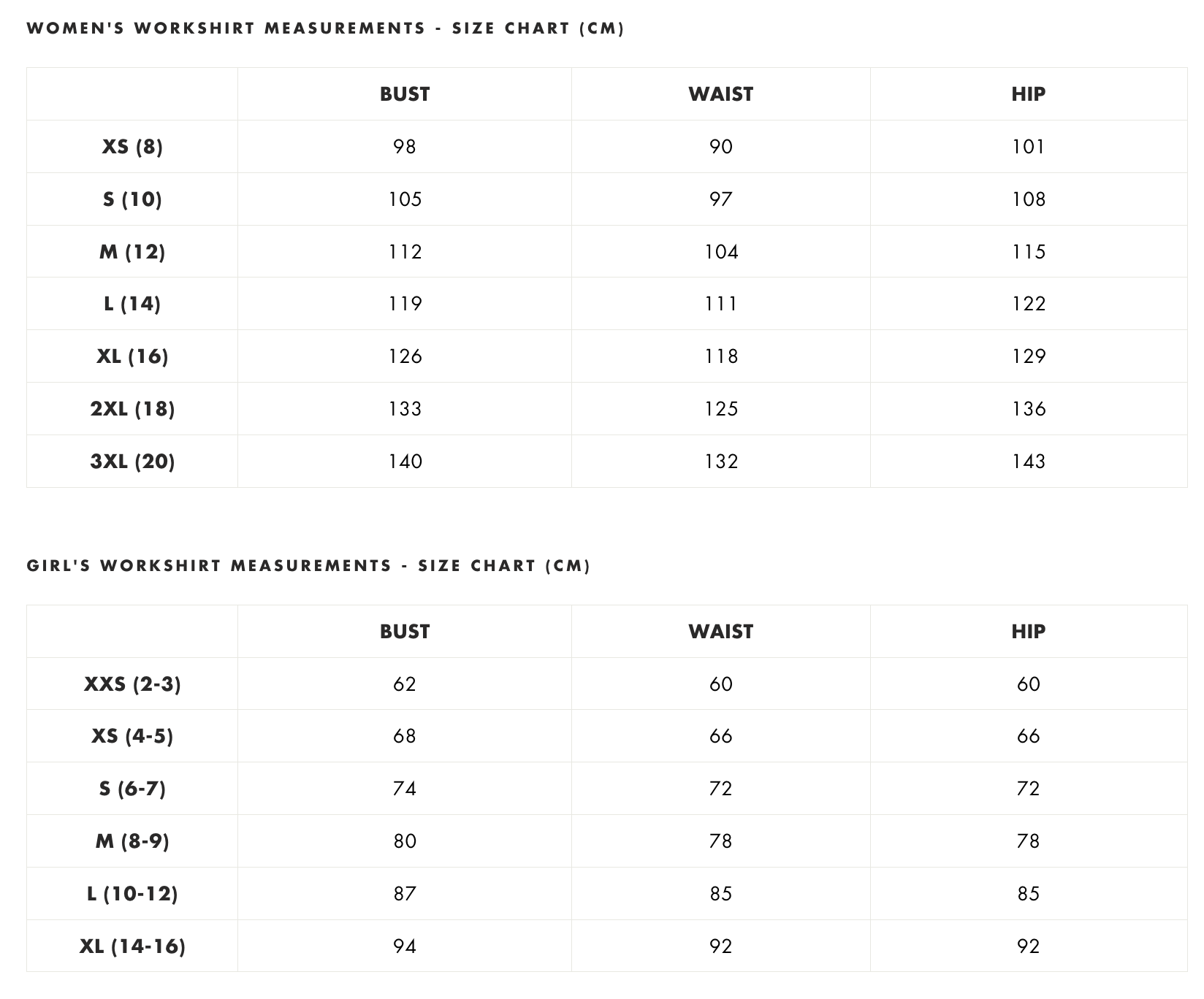 Full Sizing can be found at: https://www.justcountry.com.au/pages/size-charts?srsltid=AfmBOor5zWQEzVvw5Q2hoGIq1d1OA_WPIzHWfwMIgvYKuQJxT5fQK6XQ